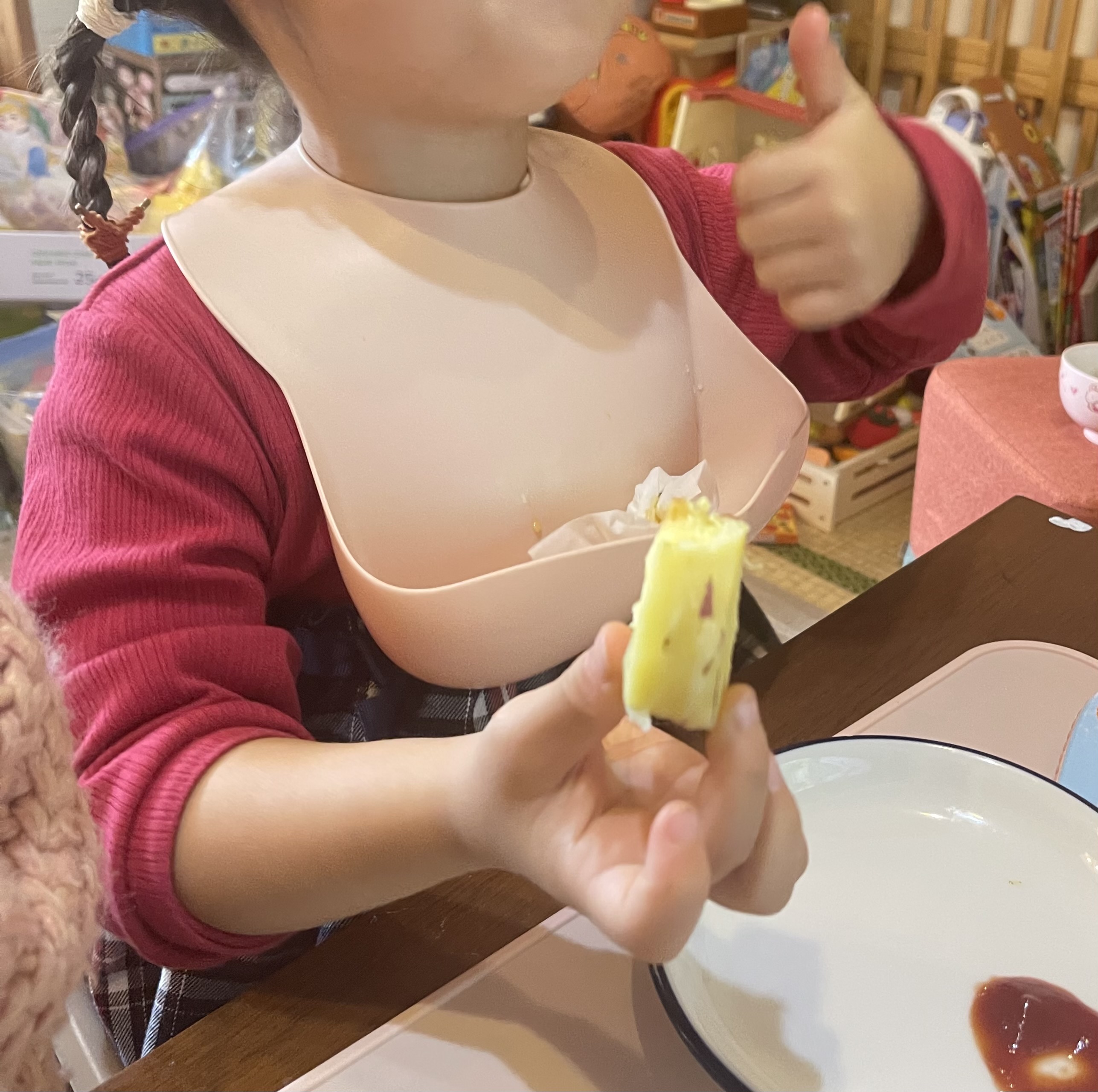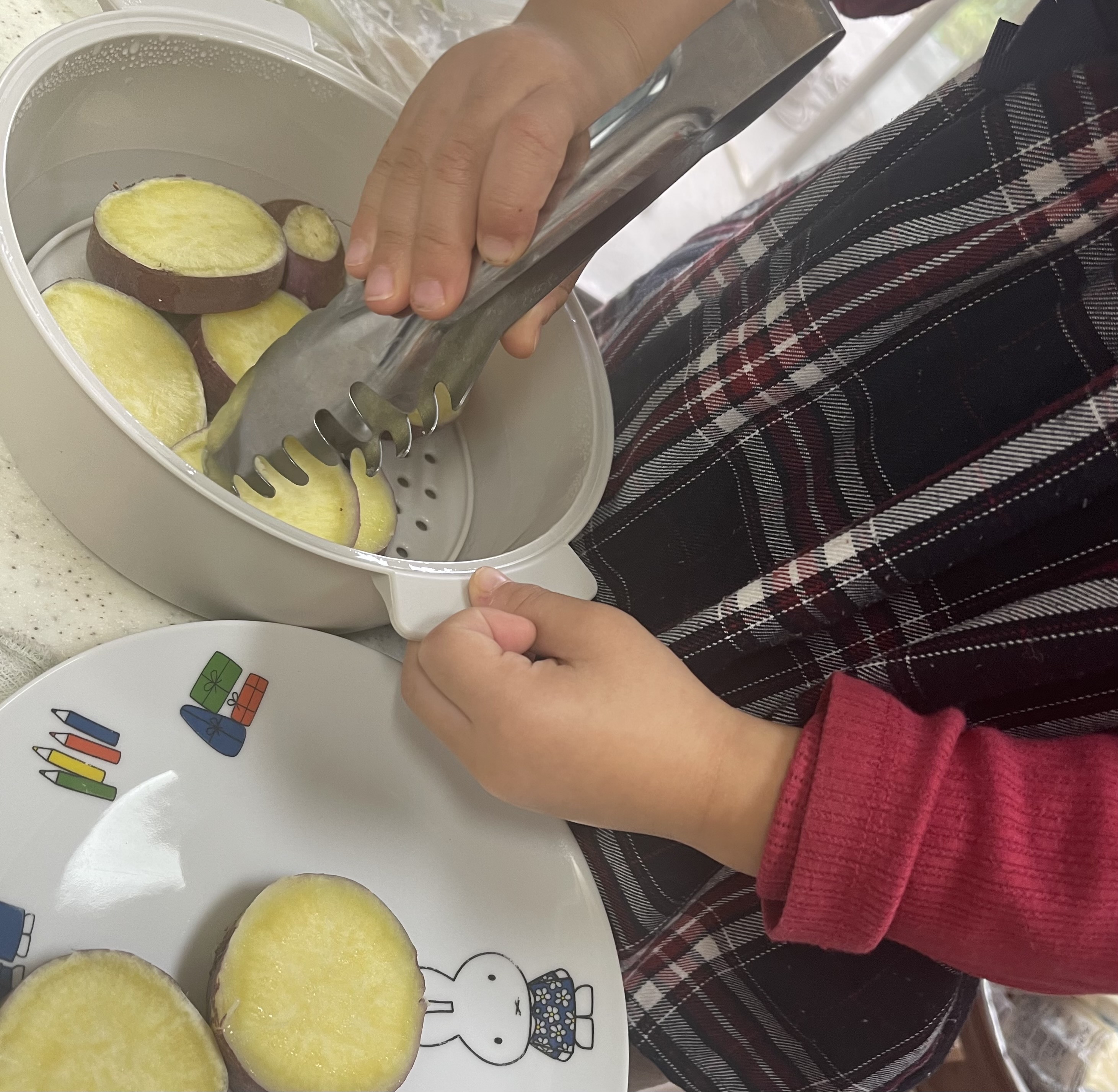 熱々になったさつまいもをみて、黄色だ!と言っていました。