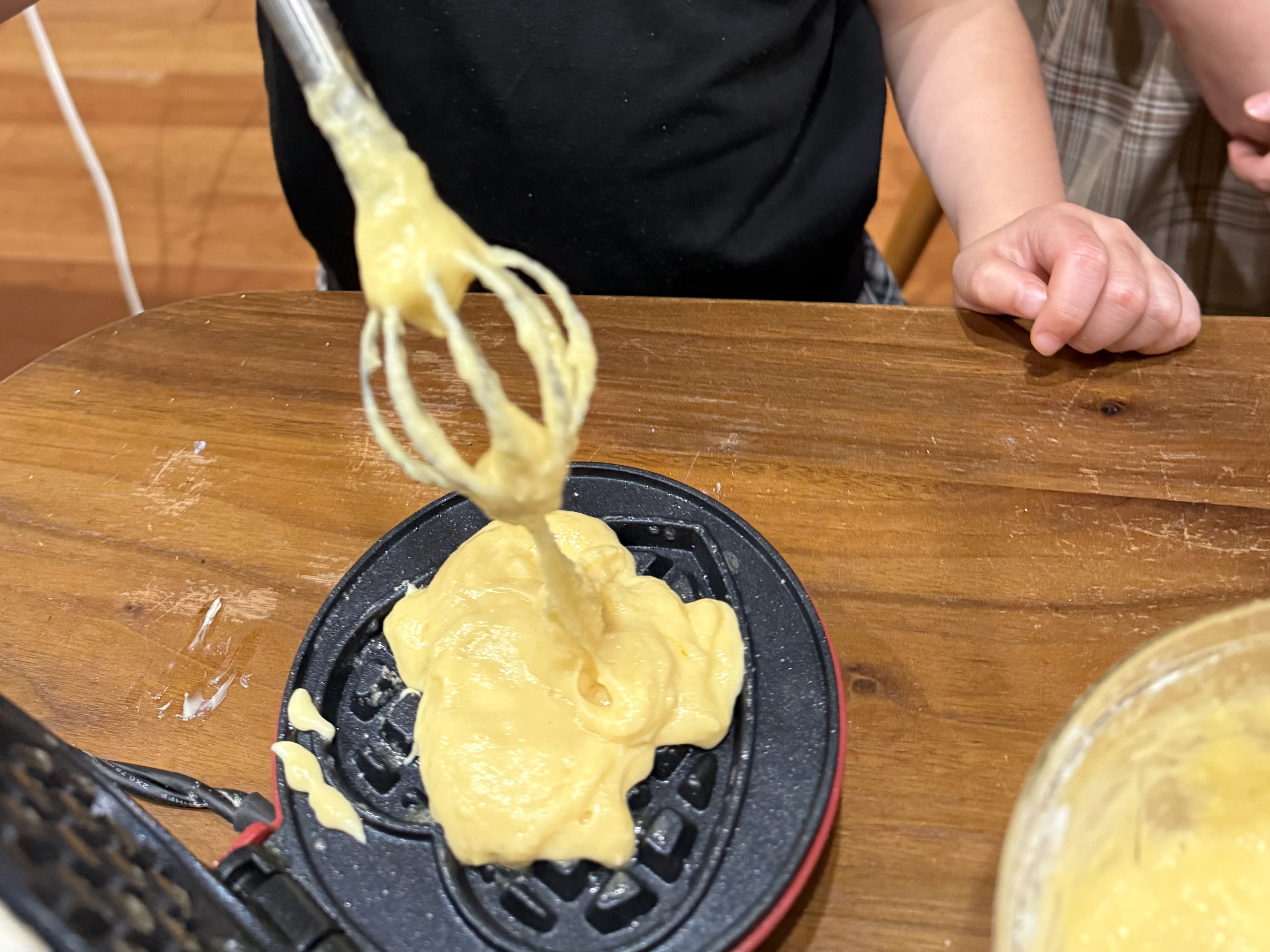 煮込んでいる時間を使って、ワッフルメーカーでワッフルを焼きました。