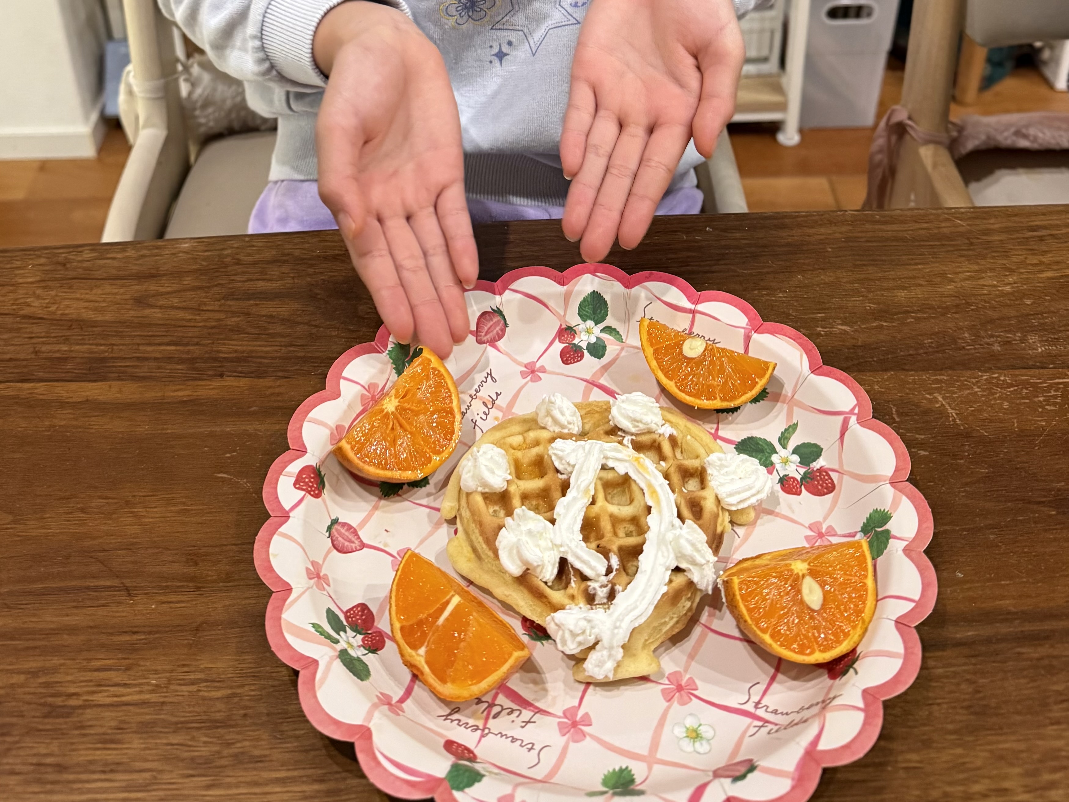 焼きたてのワッフルと一緒に作りたてのジャムを味わう『春のこどもスウィーツ教室』です♪