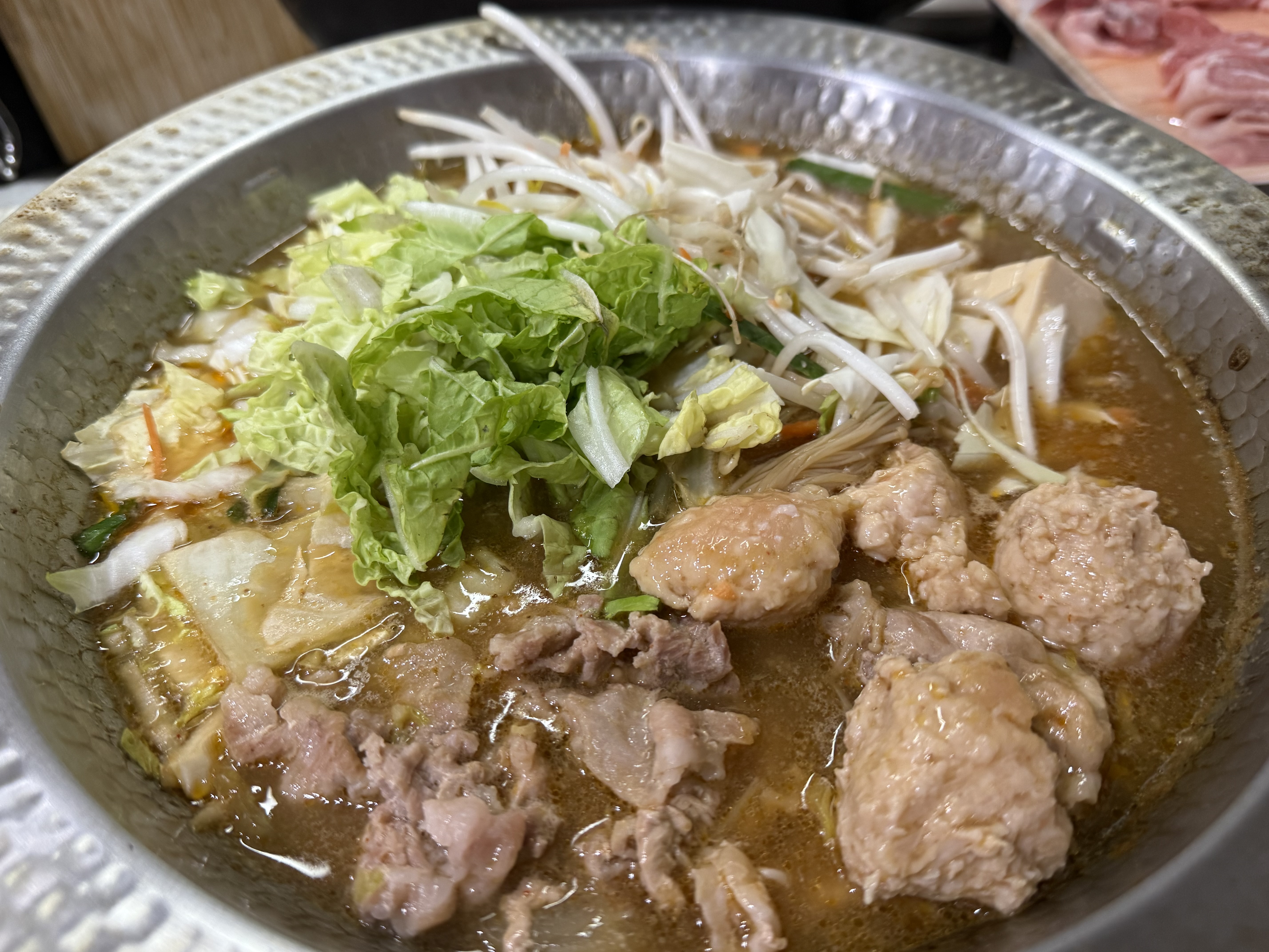 この日は白菜、豚肉、つくね、豆腐を具材にしました。