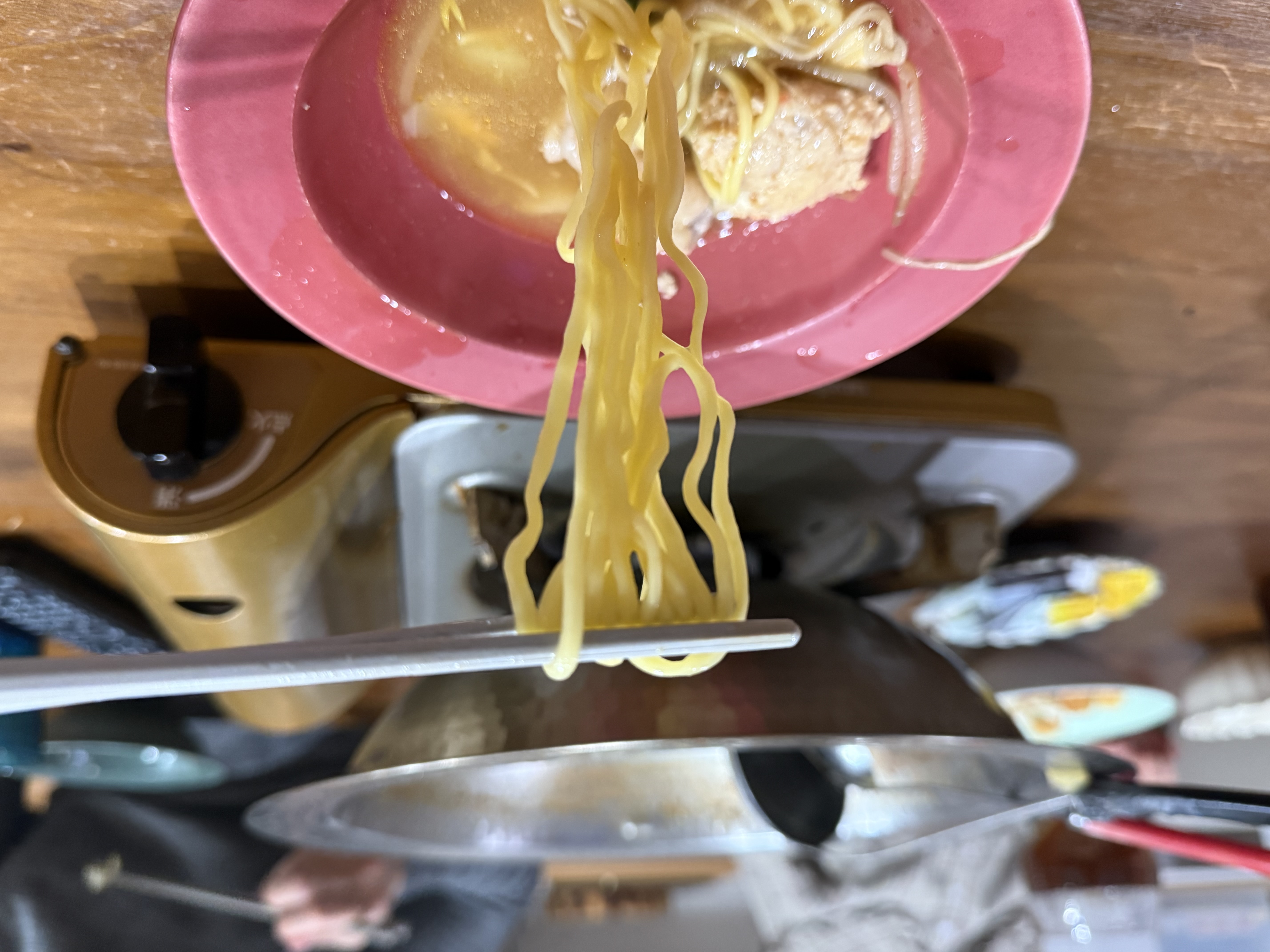 細めのちぢれ麺がスープによく絡み、お家のラーメンとは思えない美味しさ…!