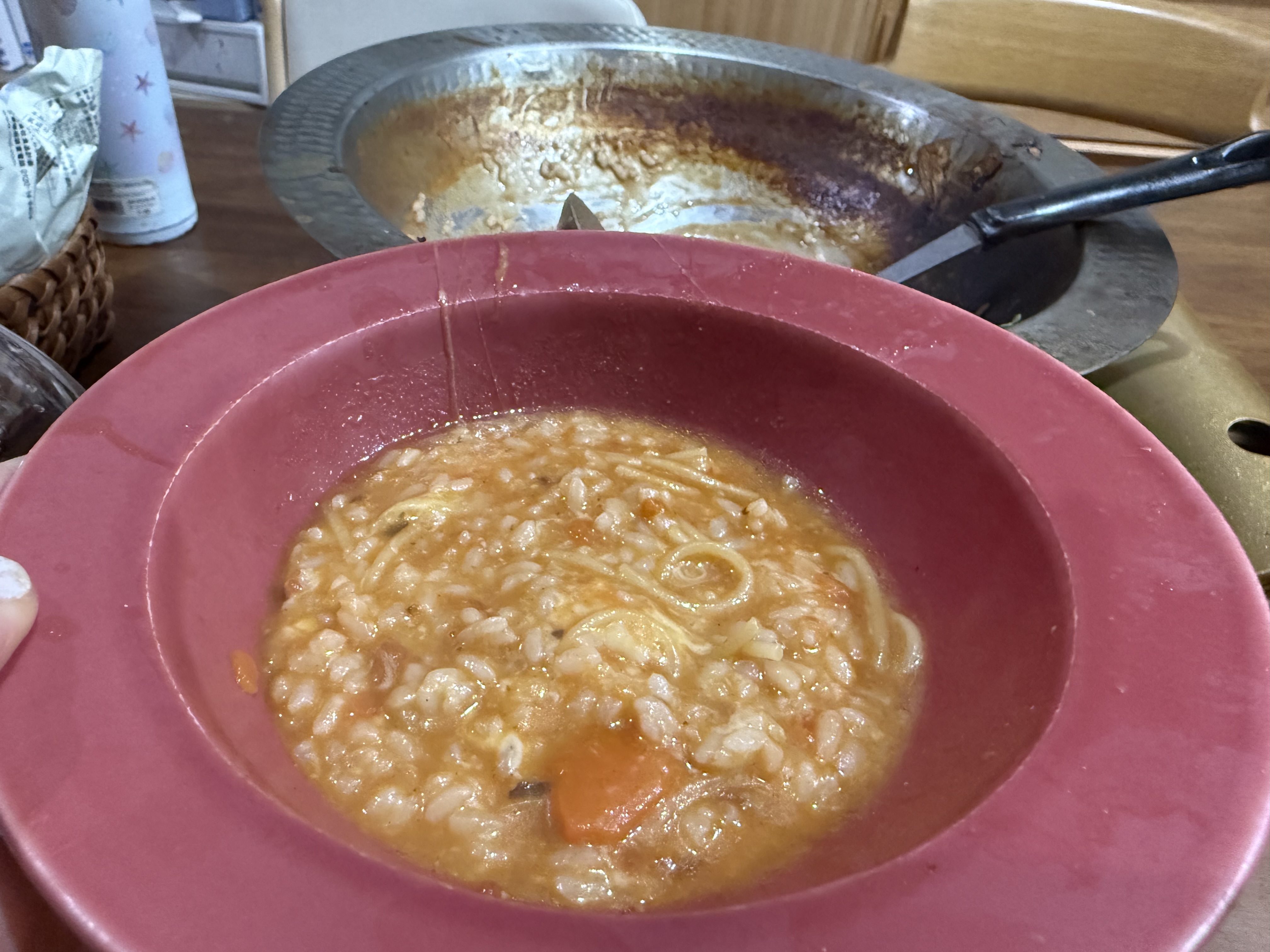 ほんのちょっぴり、スープが余ったのでチーズリゾットも作ってしまいました。