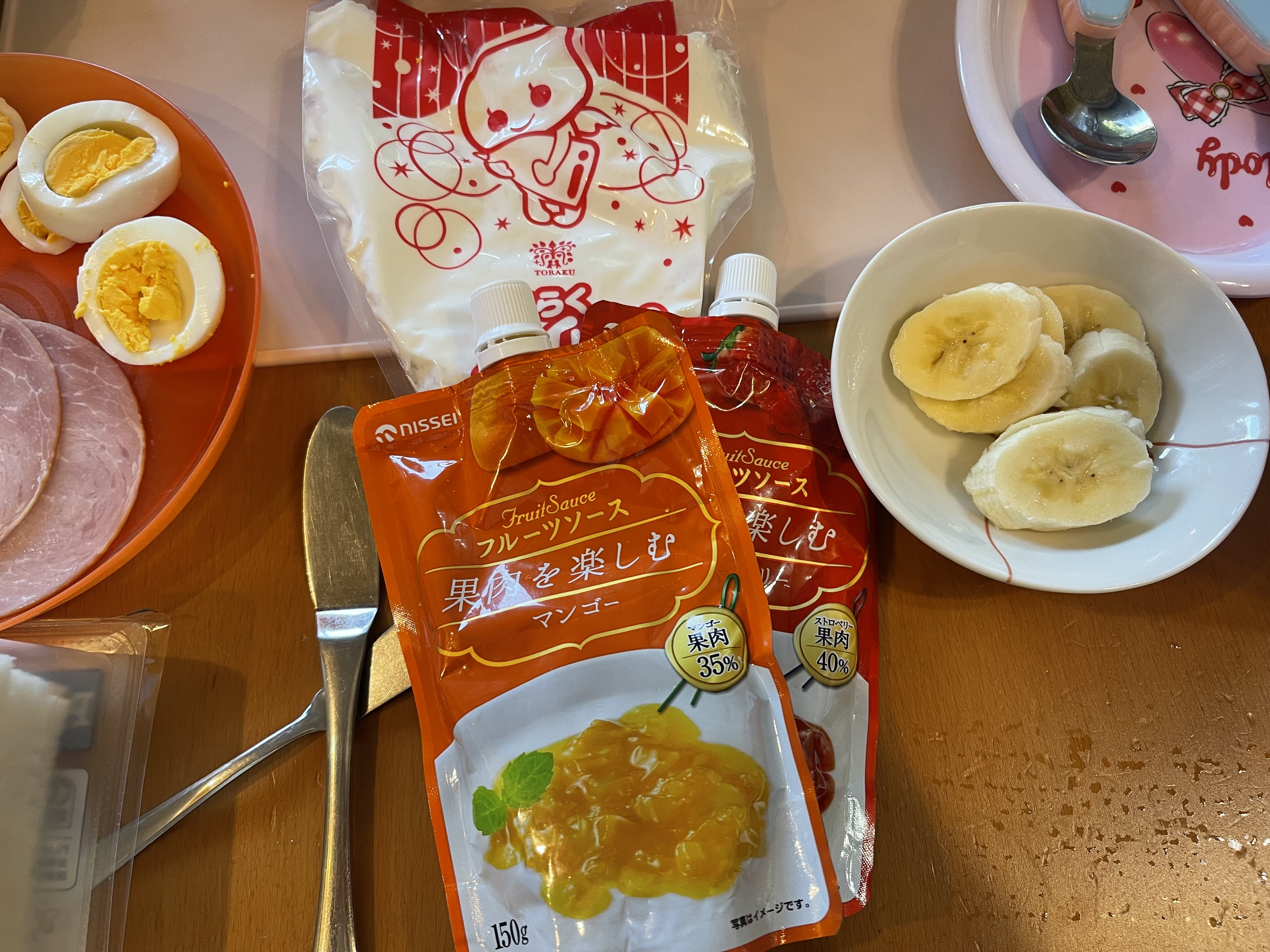 真っ先にフルーツソースを使って甘い【サンドイッチ】を作っていました。