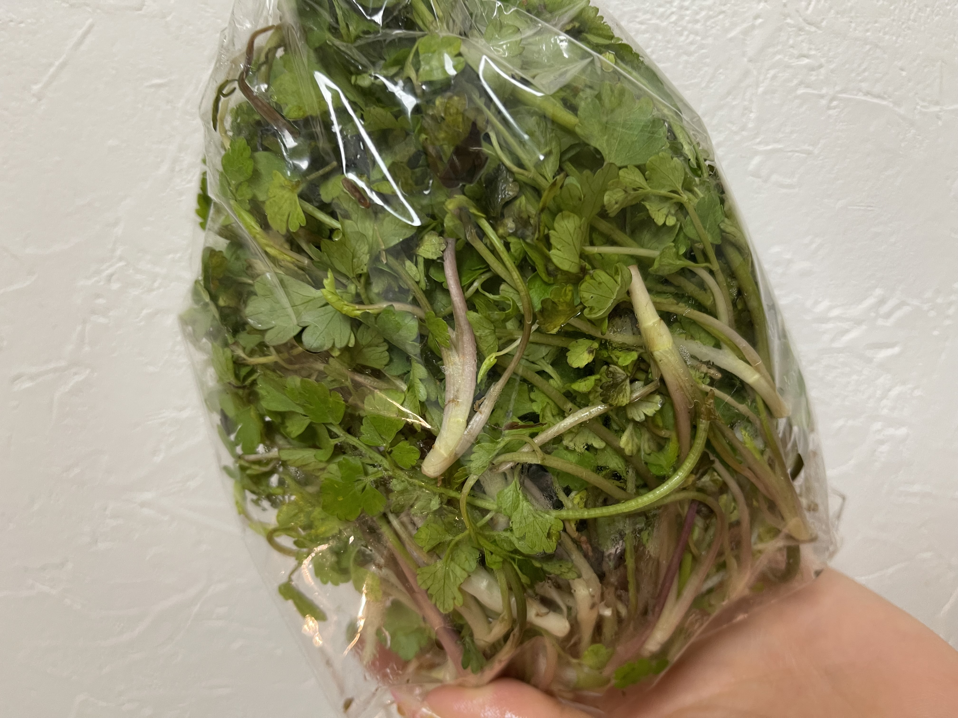 フワッと広がるセリの風味が美味しく、家族が食べやすいよう塩をパラッと振ったので、
